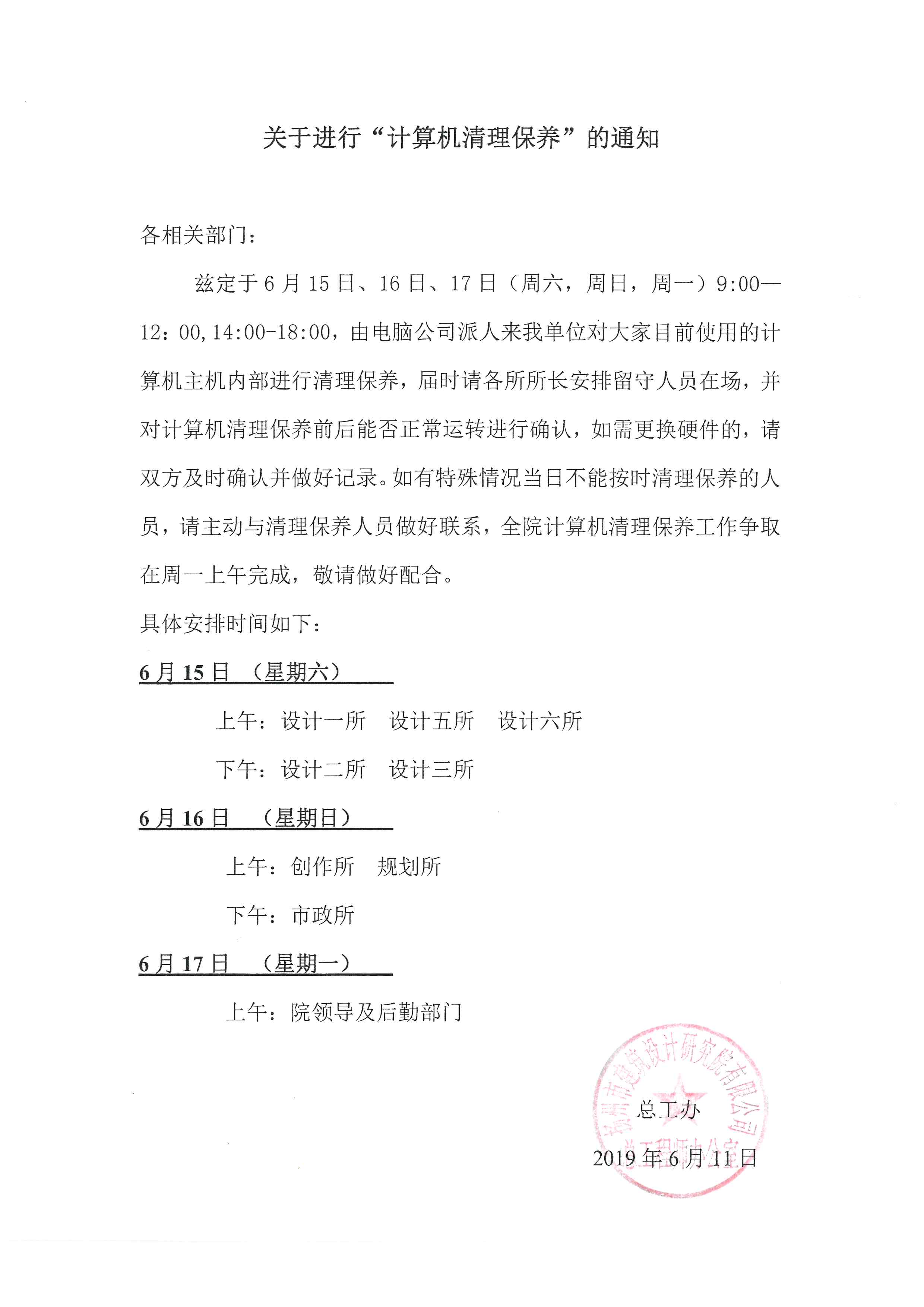 ·關(guān)于進行“計算機清理保養(yǎng)”的通知 [2019-06-11]